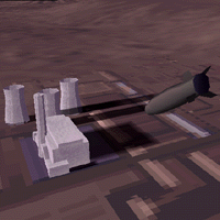 目標の発電所に近づいたら使用兵器をJDAMに切り替えます。高い高度で進入するとJDAMの射程が伸びるためSAMに狙われること無く攻撃できます。攻撃MFD上に縦長の白い楕円が表示されるので、目標がその中に入ったら投弾します。LGBと異なりJDAMは母機からの誘導を必要としないので、投弾したら進路を180度かえてもいいでしょう。JDAMはかなり高い確率で命中しますがもし外れたらもう残りの1発で再攻撃します。