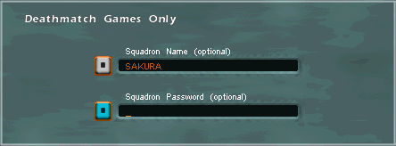 DMではプレイヤー仲間でスコードロン(Squadron:飛行隊)を組むことでチームプレイが可能になっています。スコードロンを組むにはメンバー全員がMultiplayer Optionで同じSquadron nameとpasswordを設定する必要があります。ゲーム中、同じスコードロンのプレイヤー機はアタックディスプレイには味方を表す緑色で表示されます。DMでは[Shift]+[T]でスコードロンのメンバーだけにメッセージを送る事が出来ます。