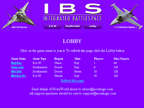 F-22 Lightning3でもNovaWorldでの多人数対戦が可能ですが、戦場はIBSとは別のF-22L3専用のものとなります。また接続方式はNova Worldのみとなり、modemやIPX、IP入力によるインターネット直接接続は無くなりました。