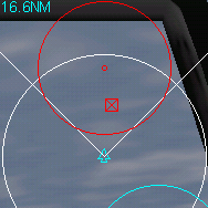 SAMの射程範囲を表す大きな円の中心にある小さな円がレーダーサイトの位置。