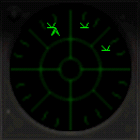 F-16のTWIはレーダー波の発信源の種類を表すシンボルがその方向に表示されます。自機の位置を中心としTWIの上が前方となっています。