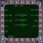 全てのMPDには周囲に20個のプッシュボタンがついていて、ゲーム中のMPD操作はすべてこれらのボタンをマウスでクリックすることで行います(操作が大変な場合はポーズをかけて行うと良いでしょう)。プッシュボタン(以下PBと略します)には番号がつけられていて左側の一番上をPB1として反時計回りに1〜20となっています。これらのボタンの役割はMPDのページによって異なり、それぞれボタンの横のMPD上で説明されます。