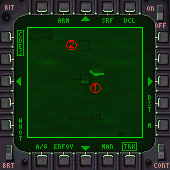 TARGETING IRページはAAQ-14ポッドのFLIR(赤外線前方監視装置)からの赤外線画像を表示し目標の補足と指示をすることができます。またレーザー誘導兵器の誘導もここで行います。機にAAQ-14目標捕捉ポッドが搭載されていない場合はこのページを使用することはできません。