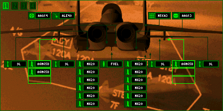 ブリーフィングではAGM-65Dx6が推奨されていましたが、残念ながらAGM-65Dは全部で9発しかなかったため1番機に3発、2〜4番機に2発ずつの搭載となりました。機外タンクは推奨にはありませんでしたが余裕を持たせるためセンターラインパイロンに1本搭載することにしました。