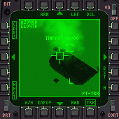 A/Gレーダーでブルズアイの北西5マイルあたりを見ると確かに明るい点が見つかったので、そのおおよその位置を目標として指示します。そしてMPDの1つにTargeting IRページを表示させるとその位置の映像が表示されます。まだ距離があるうちは分かりませんがある程度近づくと目標らしき物体が見えてきます。目標を拡大表示して正確に目標指示を行います。