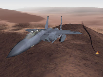 "FENCE OUT"するまでは低空飛行をするようにします。既にこちらの存在は知られているので往路のように地形追従飛行するよりもやや高めの高度(1000〜3000フィートほど)を直線飛行し速やかに戦場を離脱するほうがよいでしょう。ただし空戦等で燃料を消費してしまい残量が少ない場合はSAMの攻撃を受ける危険性はありますが高度を上げて燃料消費を抑えた方がよいかもしれません。無事イラン領空を抜ければあとは基地まで機を運ぶのみです。