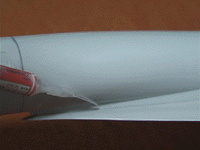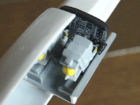 実機は高速飛行中はバイザーを上げて抵抗を小さくし、それ以外の時はバイザーを下げて視界を確保していました。さて写真を見ての通り(小さくて見にくいですが)風防パーツの周りにはかなりの隙間が出来るためパテで埋める必要があります。しかし透明パーツ周りの修正なので瞬着で内側が白化したりパテを押し込んで内側にはみ出したりしないよう注意が必要となります。