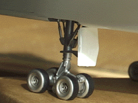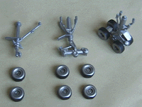 胴体のパテ埋め&ペーパー掛けの合間に脚を作ります。計10個のタイヤは各々左右2分割されていて自重変形したものとなっています。タイヤは前後とも同じサイズですがホイールの形状のみ異なります。また実機のタイヤには耐熱コーティングが施されているのでこれは装で表現します。脚柱は各2パーツであっさりと組みあがりますがそれでも形状はちゃんと再現されています。
