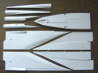 塗装が終わったら脚や外翼パーツなどを取り付けます。外翼はヒンジパーツを介して取り付けます。実機は高速飛行中は外翼を下に折り曲げて方向安定性を高める機構があります。キットには水平位置と65°下げのパーツがセットされていますが地上姿勢では外翼を65°下げると翼端は地面より下になってしまいます。接着せず垂直尾翼は差し込むだけにしました。