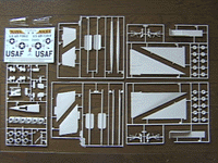 箱を開けて最初に思うことは"デカい!"ということです。実機が大きいわけですから当然ですが主翼パーツだけでもすでに同じ1/72の戦闘機の大きさを遥かに上回っています。成形色は白に近いライトグレーでモールドは胴体下面の一部が"運河"気味な凹になってるほかはすべて凸となっています。下の写真を見てもわかる通りパーツ自体は大きいもののパーツ数は意外と少なく、組み立てるだけなら簡単にできてしまいそうです。外プラのお約束で箱を開けた時にはすでに一部のパーツがランナーからもぎ取れていて、最悪だったのはデカールが傷だらけで穴まで空いているという始末でした。