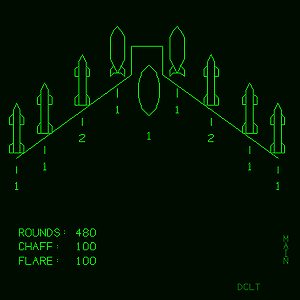 兵装ステーションに搭載されている兵器のタイプとその残数、M61A1の残弾数、チャフ・フレアの残数を確認する事が出来ます。