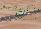 [1]を押して武器を機銃に切り替えます。するとHUD上には照準レティクルが表示されるのでターゲットがこれに重なるように機を操作し、重なったらトリガを引いて発射します。機銃の射程距離はは0〜6000フィートです。