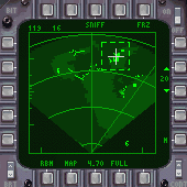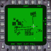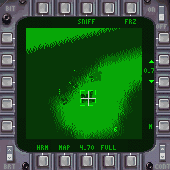 A/G RADARページはレーダーで走査した地表の様子を表示します。地上の構造物や車両などを探知してそれらを目標として指示することが出来ます。