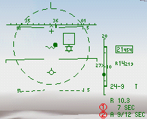 HUDの表示内容は目標指示を用いたAIM-9L/Mの発射モードとほぼ同じですが、違うところはSRMモードにはない2つのデータが表示されることです。